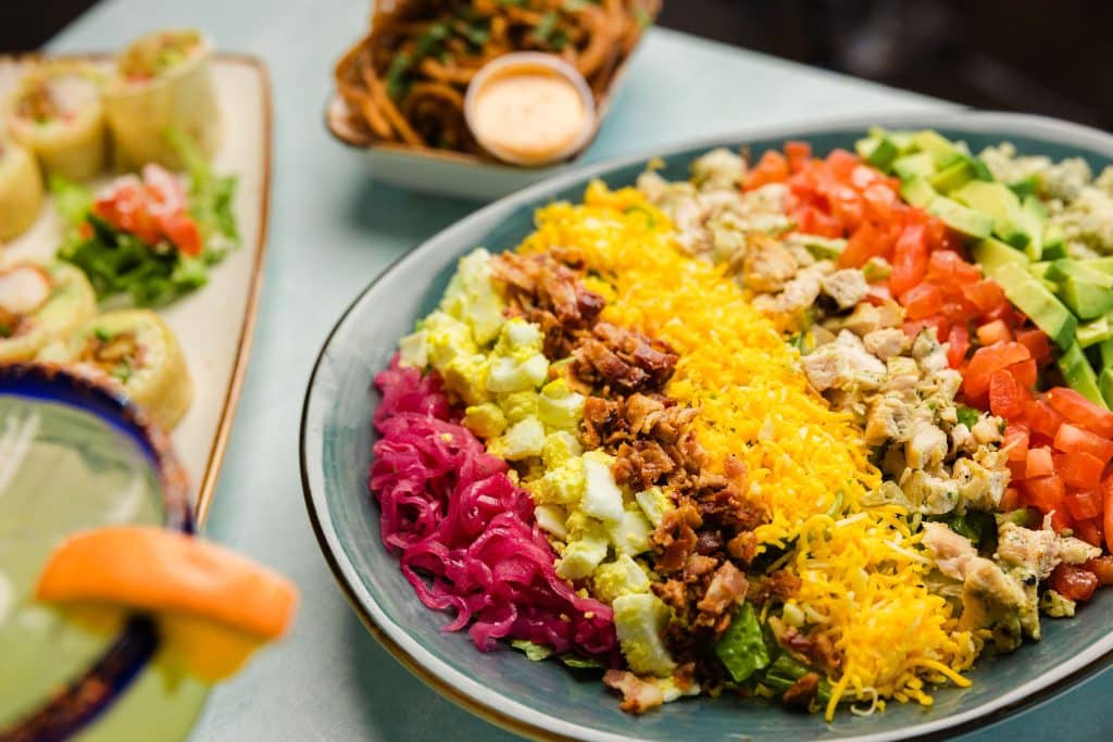 Romaine Lettuce, Grilled Santa Fe Chicken, Crispy Bacon, Avocado, Hard Boiled Egg, Mixed Cheese, Roma Tomato, Pickled Red Onion & Gorgonzola