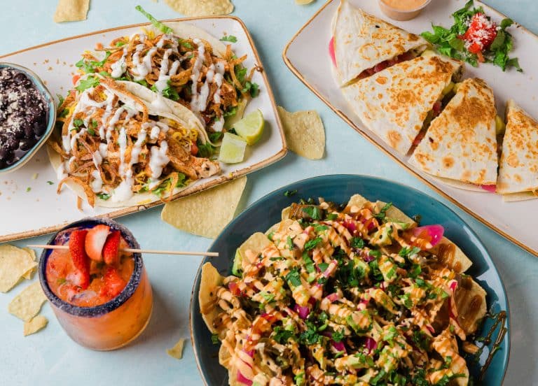 Grilled Flour or Homemade Corn Tortillas, Rice, Black or Refried Pinto Beans, Avocado, Salsa Fresca, Pickled Red Onion, Jalapeños, Cilantro & Cotija